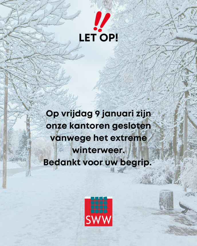 Op vrijdag 9 januari zijn onze kantoren gesloten vanwege het extreme winterweer.