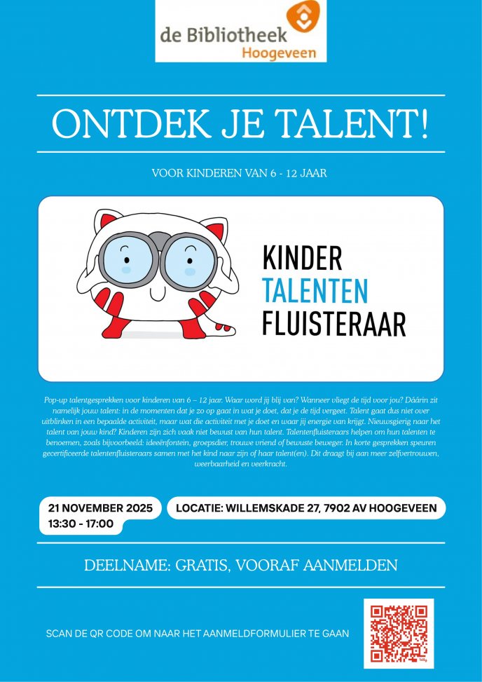 Meld je vooraf aan en ontdek jouw talent! --> Ontdek je talent! of scan de QR-code in de flyer.