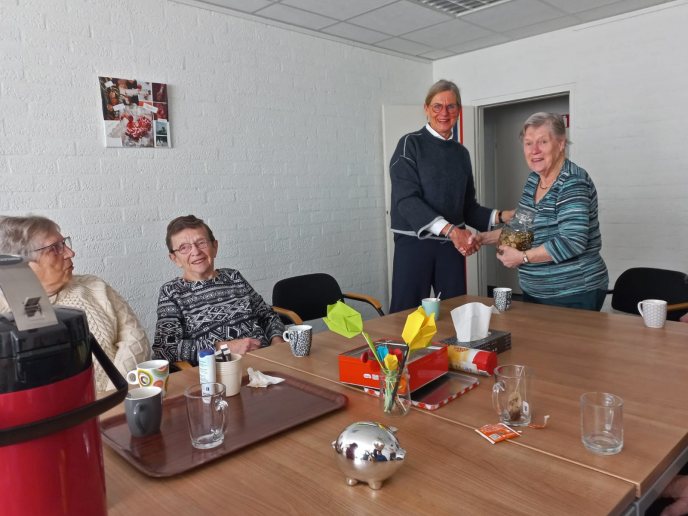 Op vrijdag 27 februari heeft deelnemer Albertje Prins van de ontmoetingsgroep van het Huis van de Buurt aan het Beukemaplein een bedrag van €235 overhandigd aan Alice Meijer, vertegenwoordiger van Hospice Hoogeveen (het Willem de Boer Huis). Het bedrag is de afgelopen maanden door de groep gezamenlijk bij elkaar gespaard.